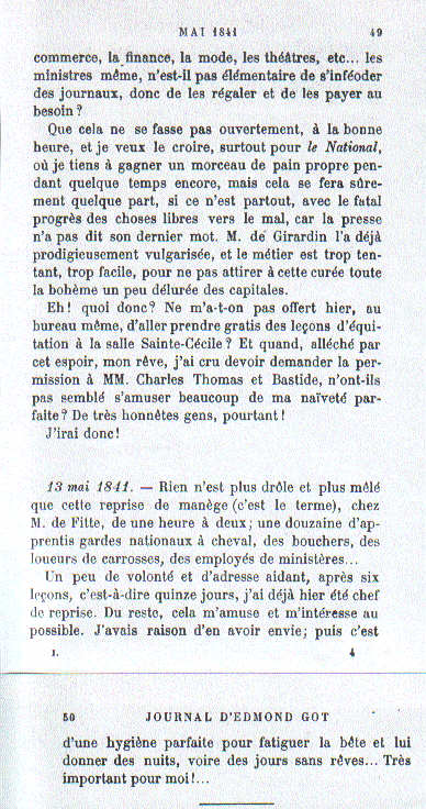 maître de manège Ed. de Fitte le 13 mai 1841 (Tome I, pages 49-50):
