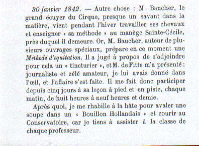 janvier 1842), comment il fut présenté par de Fitte à François Baucher (Tome I,