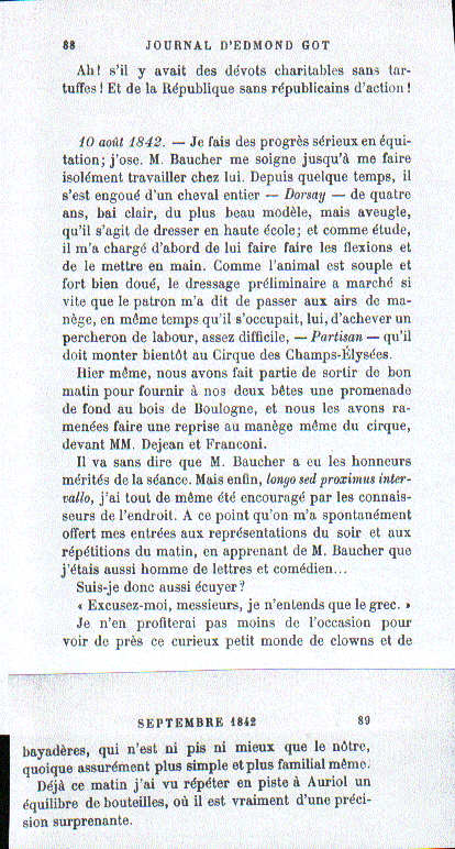 Le 10 août 1842, Edmond Got nous parle de ses progrès en équitation et